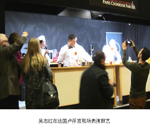 作為組委會應邀唯一代表中國參加此次盛會的中國寧夏廚師吳志紅,向世界各地的來賓表演了中國清真美食,他克服了使用西餐用具及電磁爐不習慣的困難,在法國藍帶廚藝學院的學員配合下圓滿完成了這次表演,制作的翡翠魚花受到觀眾的熱烈歡迎,他以高超的技藝征服了世界各地的美食愛好者,受到了評委會主席愛德華?君度先生的高度評價。據悉,代表中國的美食圖書《舌尖上的中國》也獲得了這次大獎賽的獎項。