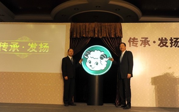 百勝餐飲集團中國事業部主席兼首席執行官蘇敬軾與原小肥羊餐飲連鎖有限公司首席運營官張占海共同為小肥羊新logo揭幕