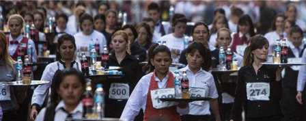 阿根廷舉行餐廳服務(wù)員“端盤子競(jìng)走比賽”
