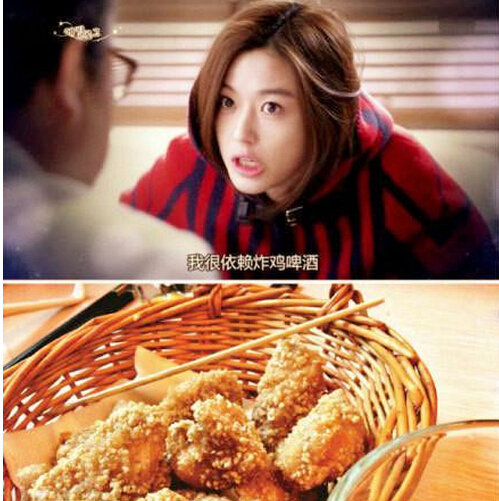 “初雪的時候要吃炸雞配啤酒!薄秮碜孕切堑哪恪返软n劇一度風靡全國,劇中女主角最愛的“啤酒炸雞”搭配也火起來。冬天炸雞的銷量一下子超過了往年,臺灣超商推出“不用等,可以買回自家享用”的韓式炸雞包,平均每日賣出上萬包;專賣韓式炸雞的店家更大排長龍。