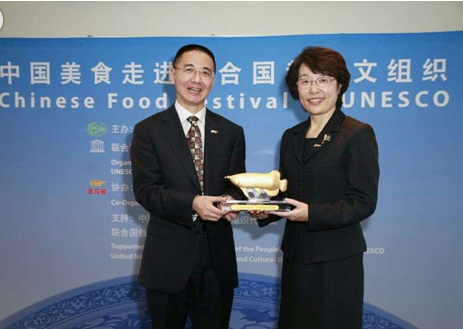 圖為聯(lián)合國教科文組織副總干事張秀琴(右一)出席中國美食申遺活動