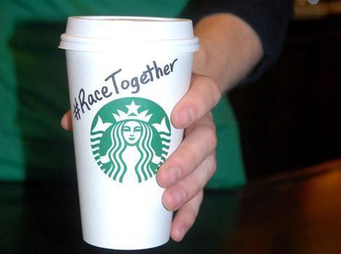 寫有Race Together的咖啡杯