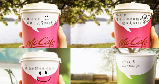 繼2015 年圣誕期間“麥咖啡”大陸店用姜餅人和姜餅味拿鐵引爆朋友圈后,臺灣地區的“麥咖啡”于近日推出了一款被譽為表白神器的“對話杯”.