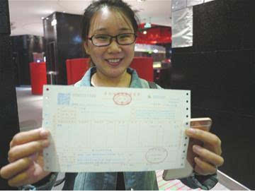 來青旅游的威海女士丁風菊在海底撈取得首張營改增擴圍后的餐飲業(yè)發(fā)票。